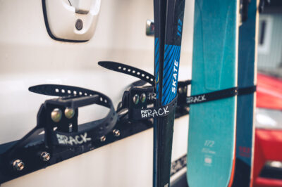 Whether cross-country skis, touring skis, alpine skis, or countless pairs of poles: they all find their place at the rear of the camper with the PUSHrack.