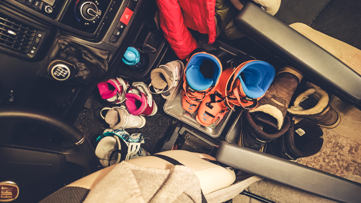 If the skis are stowed inside, clothes get damp, things constantly have to be rearranged, and chaos is inevitable.